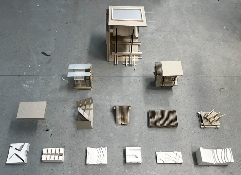 Model making is a crucial part of both the iterative process of design and the communication of a final proposal. When iterating with design, I find models are useful in solving problems within a design, but also act as a fun, calm break from the drawing element of design. Combining interesting aesthetics whilst experimenting with details and structural feasibility with a design through modelling is where I find the most enjoyment and best use of model making.