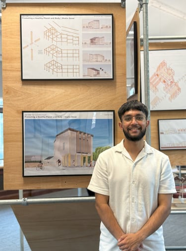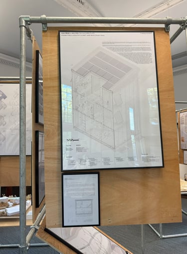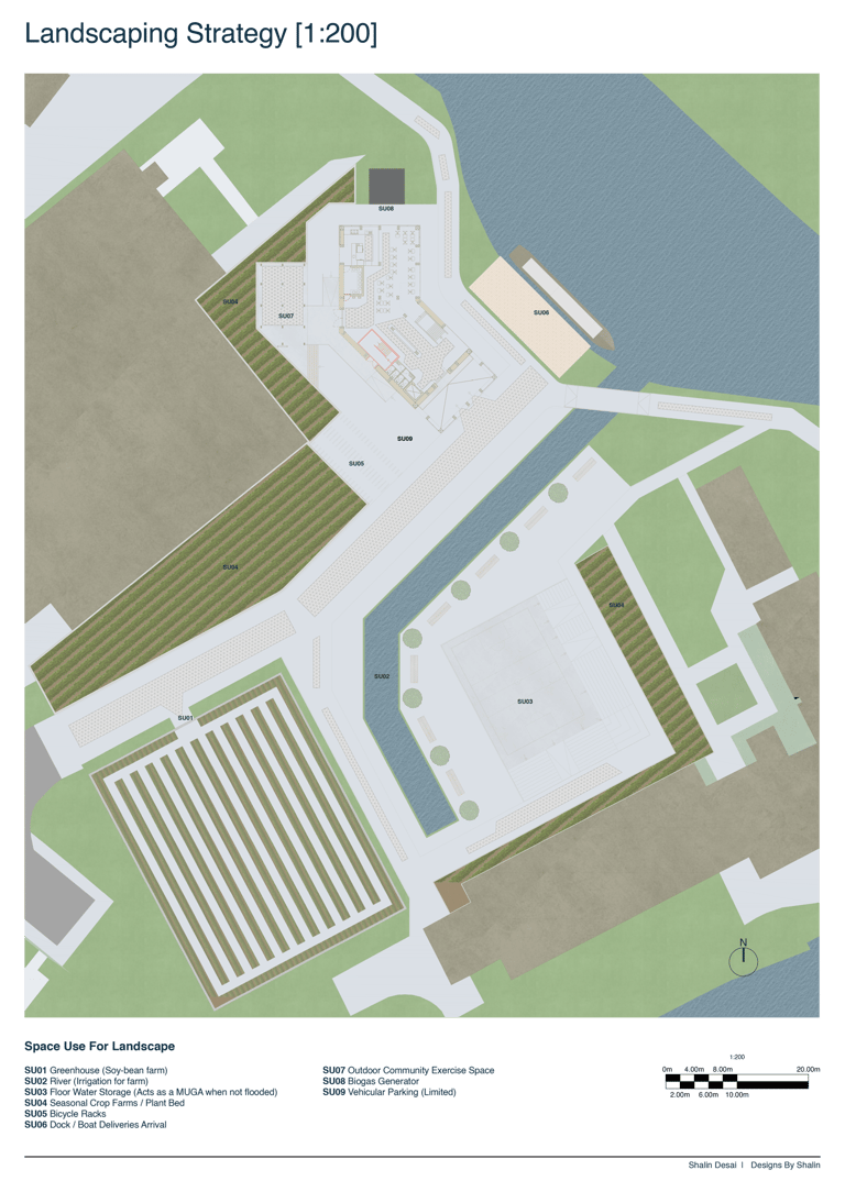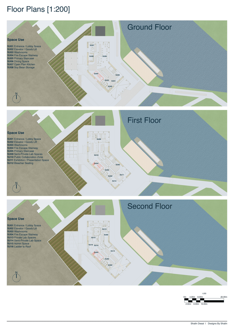 In summary, the brief for this project was to design a compact, bio-based demountable timber-frame food laboratory. The site for this project was Osney Mead Industrial Estate, Oxford, England. The main pointers from the brief were to have a zero-waste interactive dining experience, a relationship with the adjacent river, on-site crop/food growth for the lab/dining experience and some sort of personal theme and relevant spaces. In my case, this theme was health and, particularly, vegetarian protein research and production.